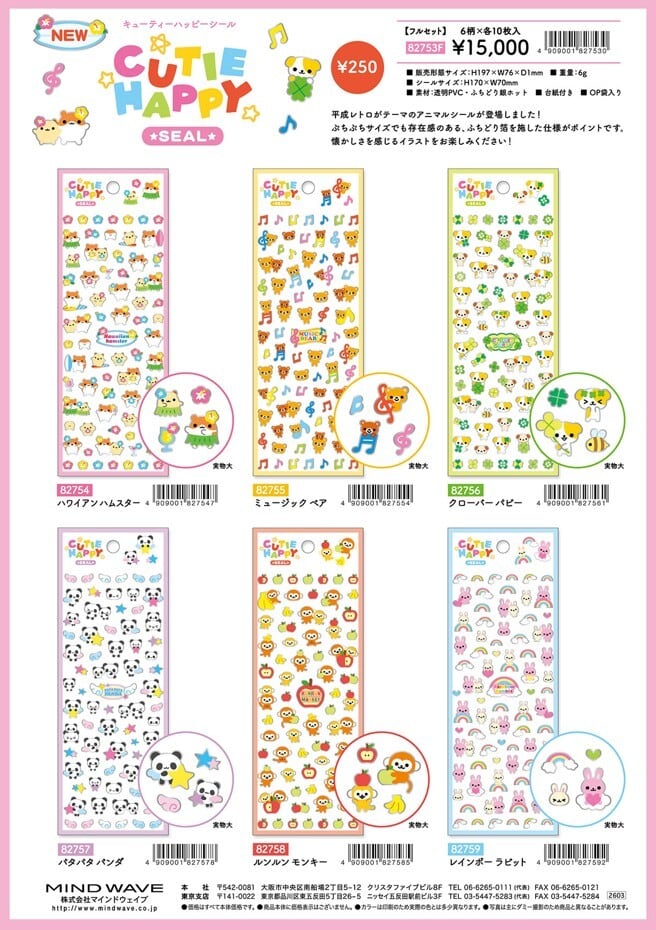 シール キューティーハッピーシール miw_82754_82759 CUTIE HAPPY SEAL sticker アニマルシール マインドウェイブ かわいいシール おすすめシール デコレーションシール