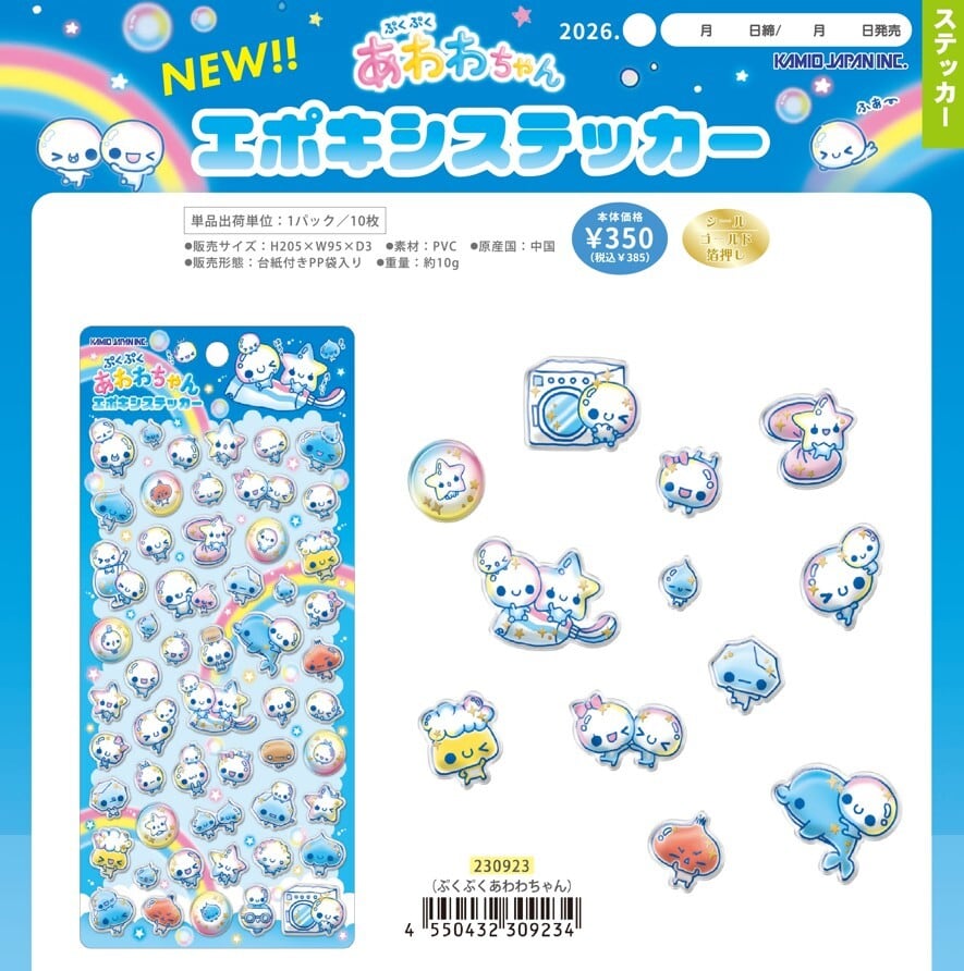 「お一人様1点限り」の数量制限 シール ぷくぷくあわわちゃん エポキシステッカー kmo_230923 カミオジャパン あわわちゃん KAMIOJAPAN seal sticker かわいいシール おすすめシール デコレーションシール ステッカー
