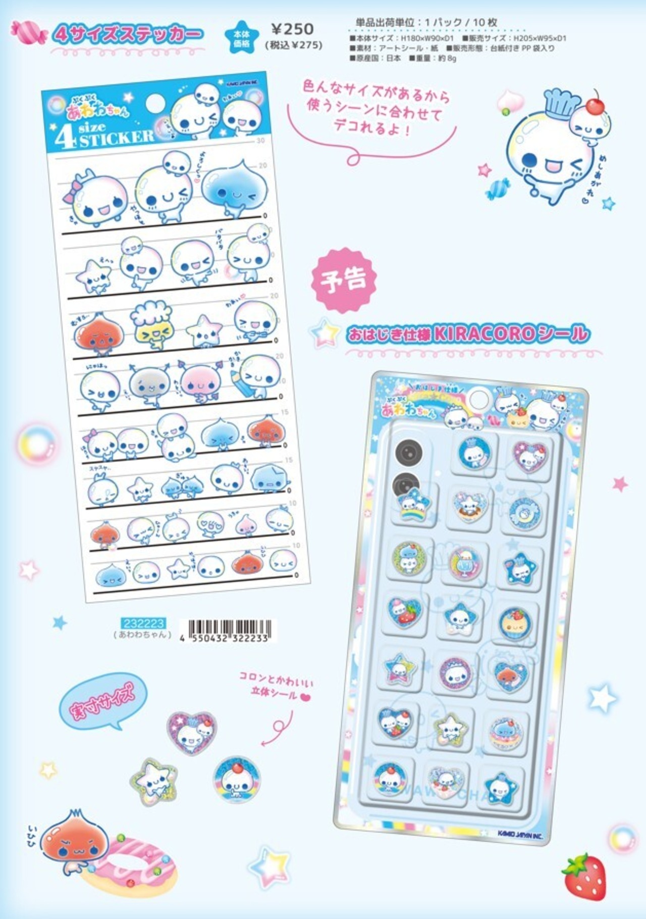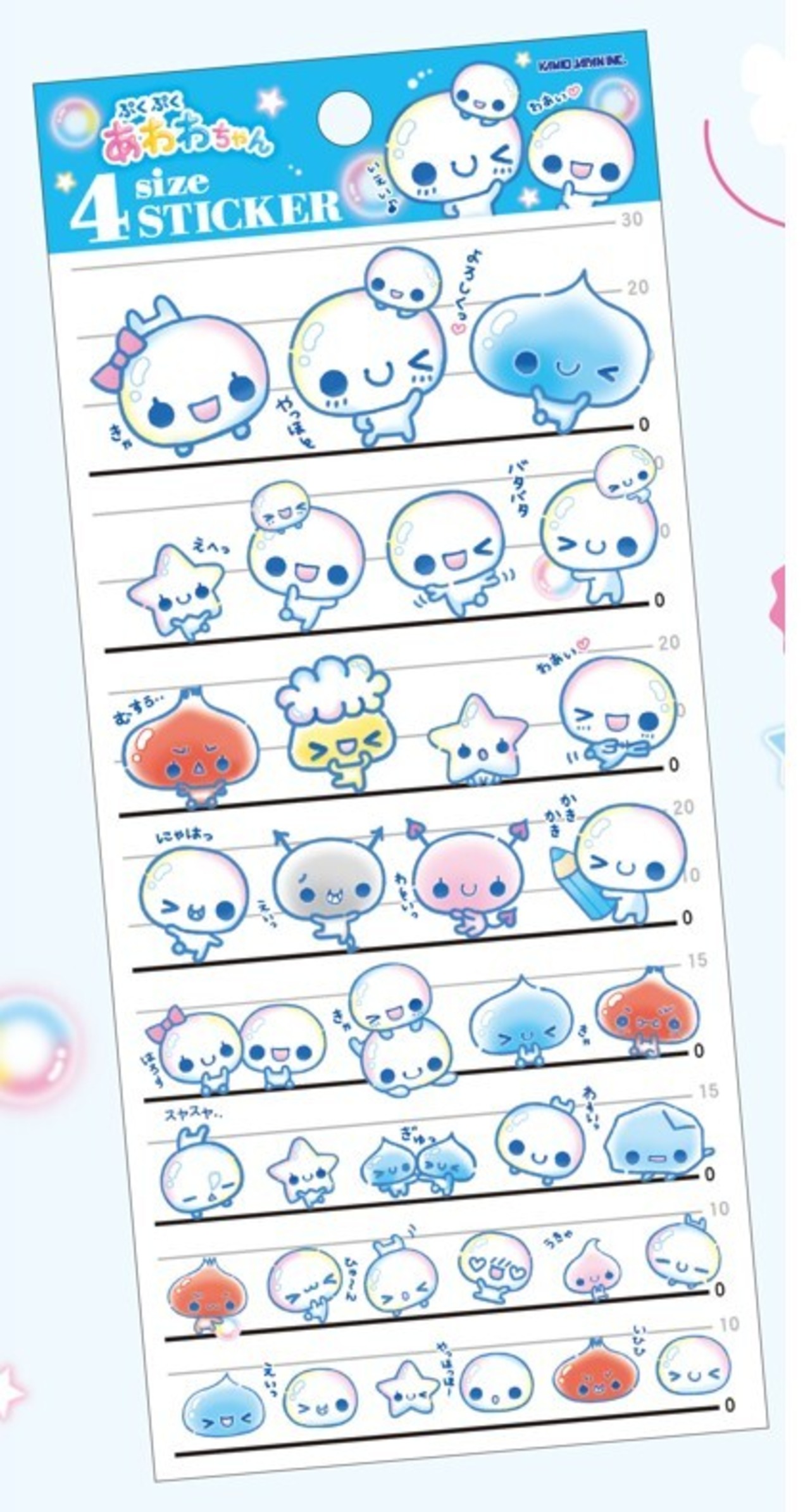 「お一人様1点限り」の数量制限 シール ぷくぷくあわわちゃん 4サイズステッカー kmo_232223 カミオジャパン あわわちゃん 4size STICKER KAMIOJAPAN seal sticker かわいいシール おすすめシール デコレーションシール ステッカー