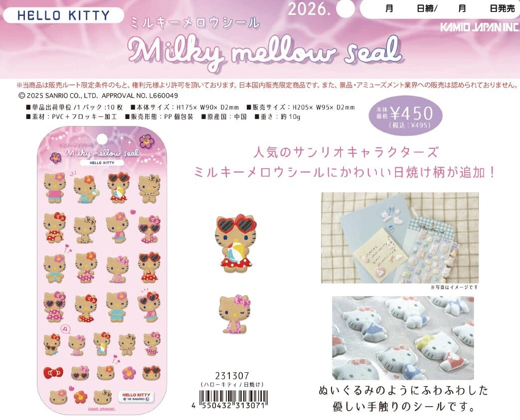 「お一人様2点限り(過去の購入分を含む)」の数量制限 ハローキティ ミルキーメロウシール kmo_231307 sticker Seal KAMIOJAPAN カミオジャパン Milky mellow seal かわいいシール おすすめシール キティちゃんシール 日焼け
